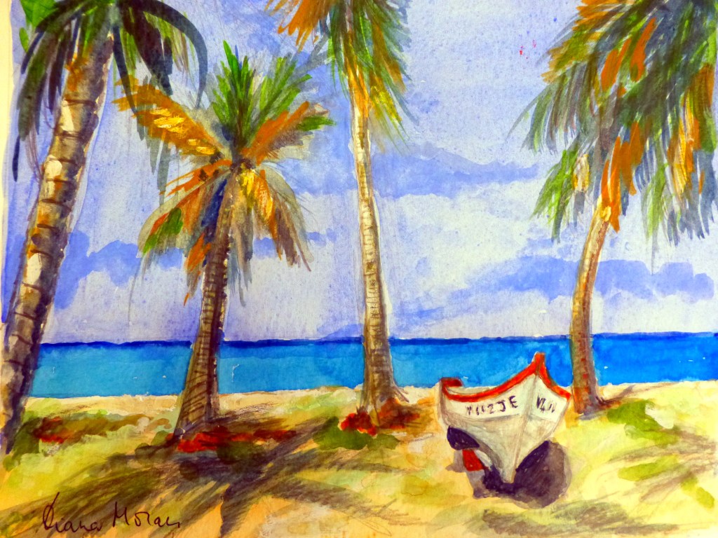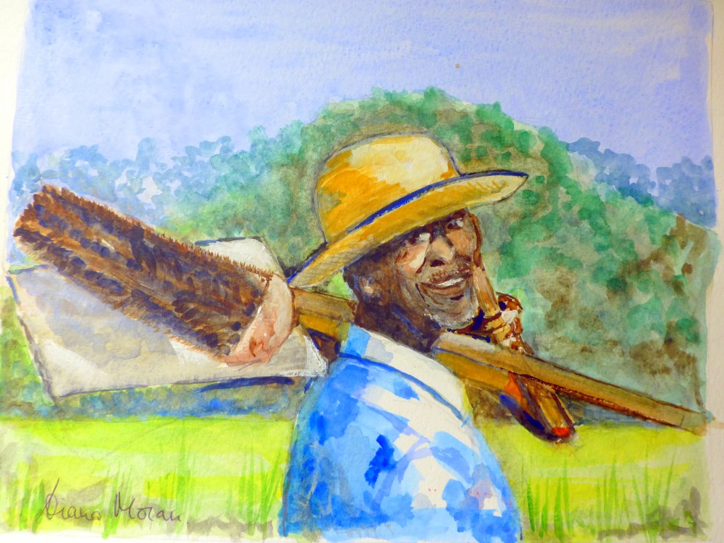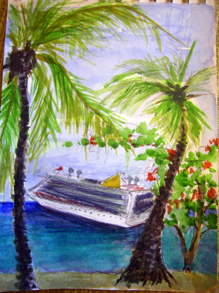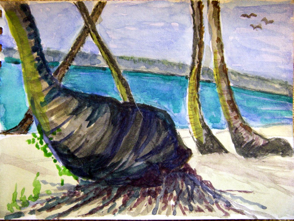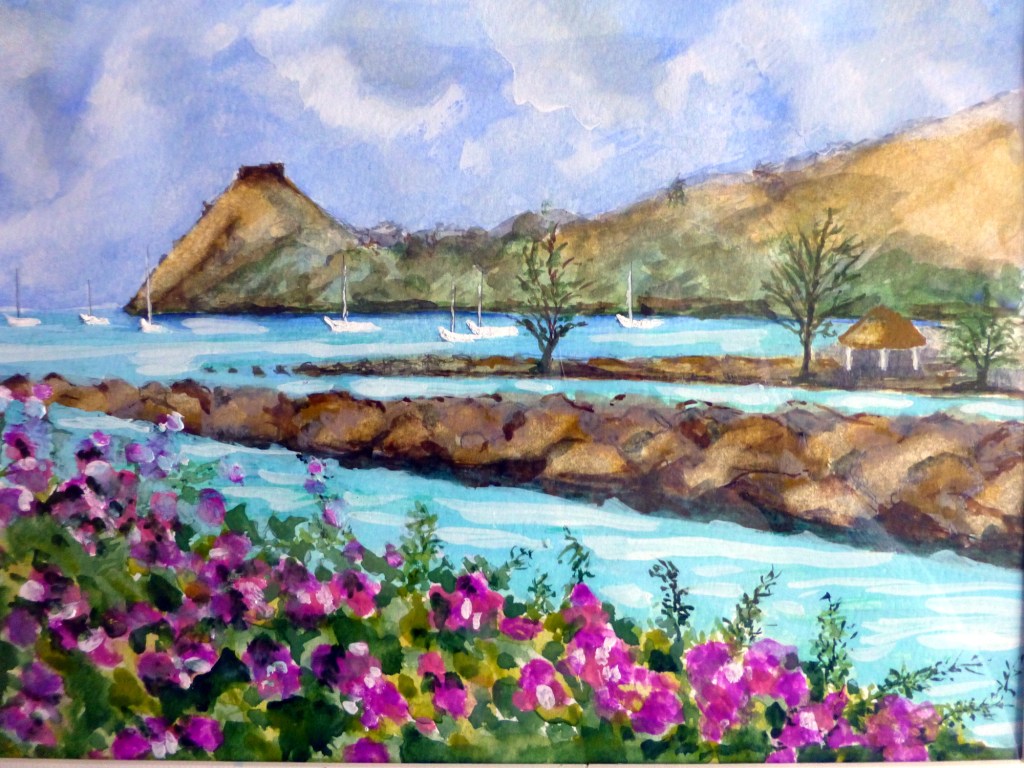 All my small paintings on these trips are in watercolour on watercolour paper for ease of transporting and size 8 x 10 ins.