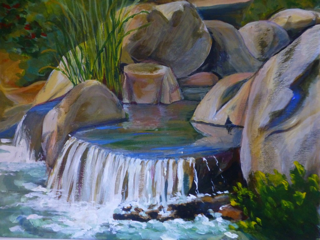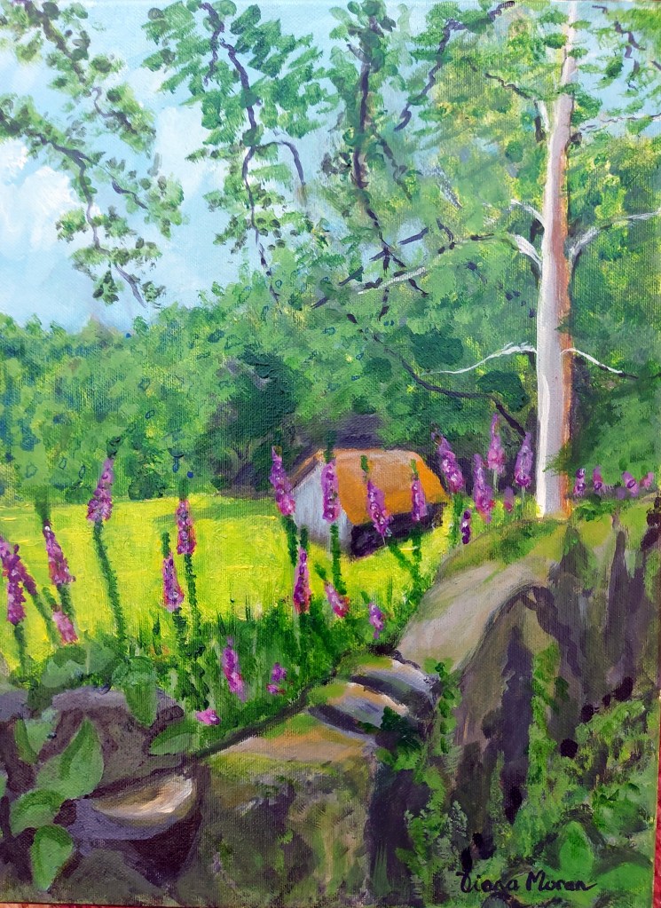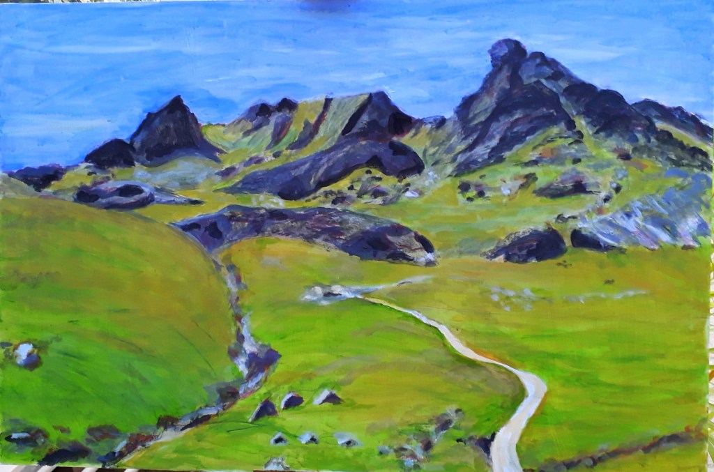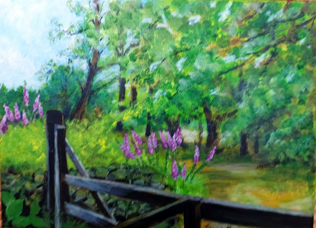 And …I need to pray for fine weather as I will be in situ for many hours! I find watercolours and acrylics are the most practical mediums for me to use when I paint landscapes.