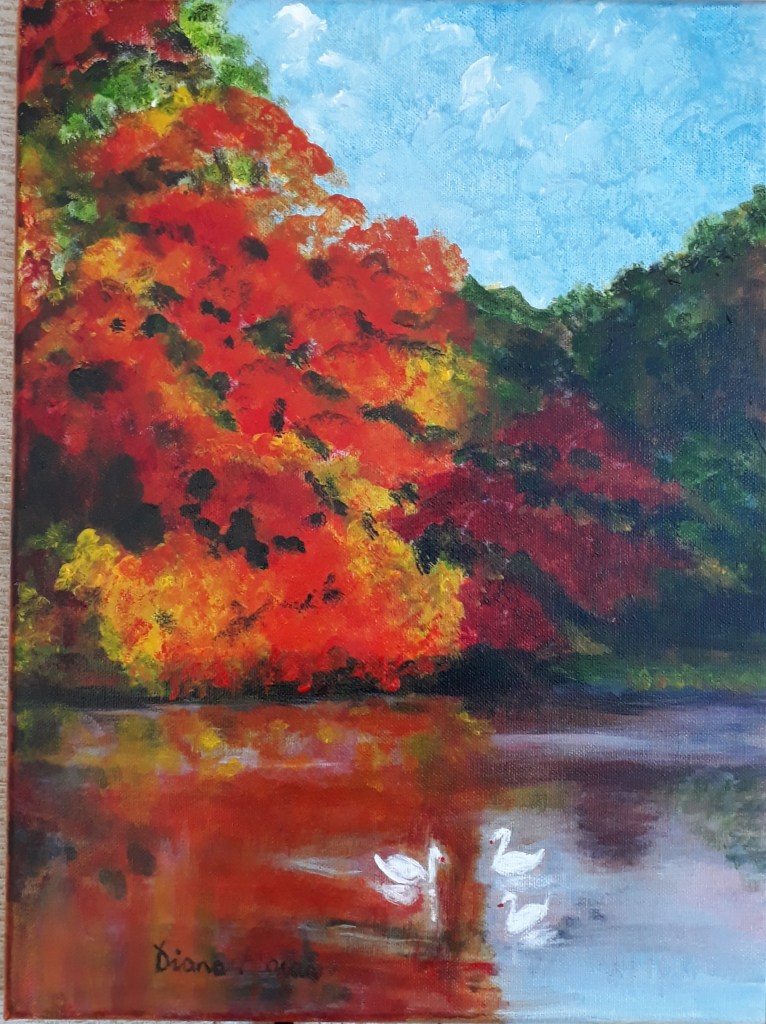 I loved trying to capture the drama of the autumnal colours reflected in the water and presided over by 3 serene swans.