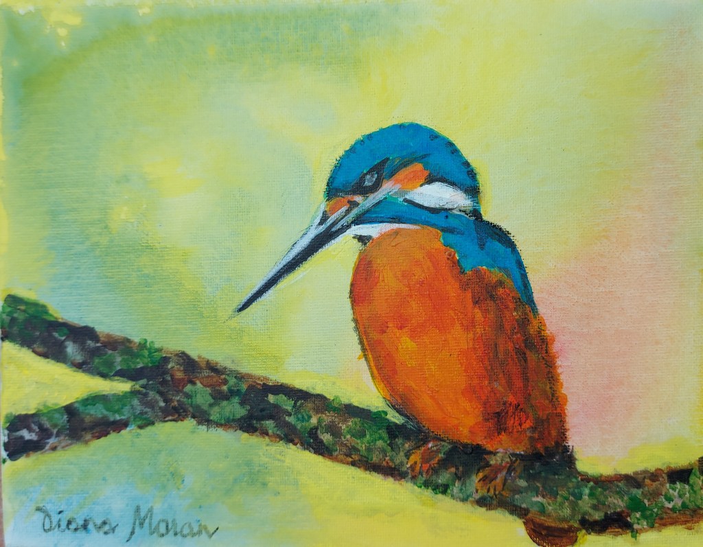 I’m fortunate to live by a river and love to see these small unmistakable bright blue and orange birds. As they fly rapidly over water hunting fish from their riverside perches, occasionally hovering over the water’s surface. Kingfishers are “amber “listed because they are vulnerable to hard winters and habitat degeneration brought about by pollution or bad management of watercourses.