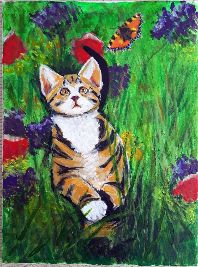 Since the demise of my companion cat Maisie last year my garden is now frequented by other cats living in the area. Pretty Puss is an example and was entranced by the butterflies to be found on my buddleia plants.