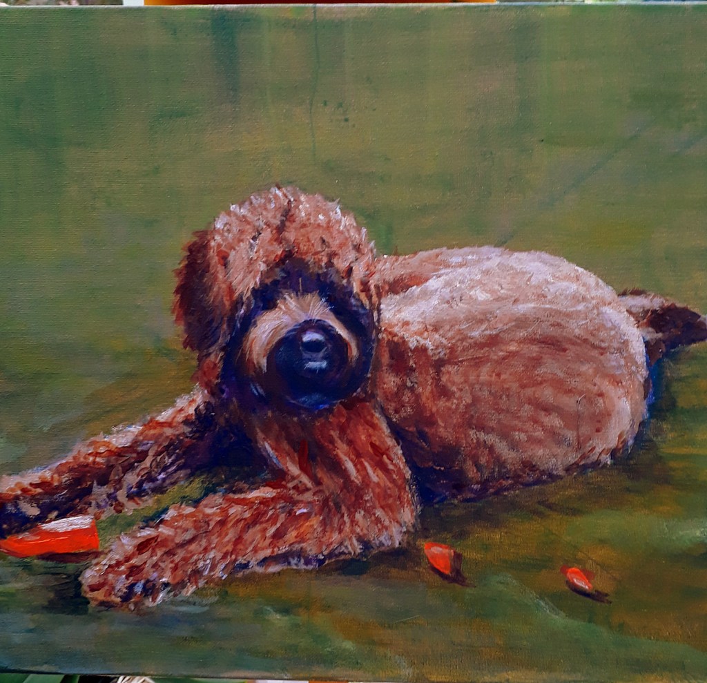 I have not been taught to paint animals but maybe my natural love of all creatures great and small helps me depict them. Ella, a dear horse adored by her owner Lucy, one of my granddaughters, was my first nervous attempt. I was very pleased with the result which spurred me on to paint my own cat Maisie and other people’s pets.
