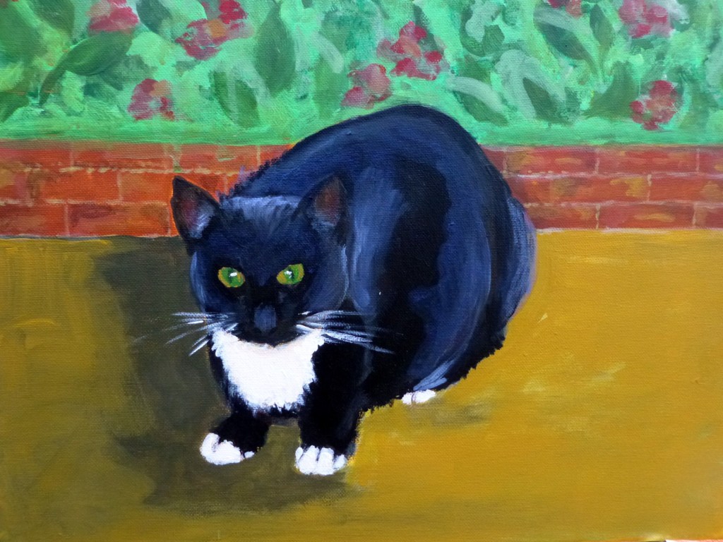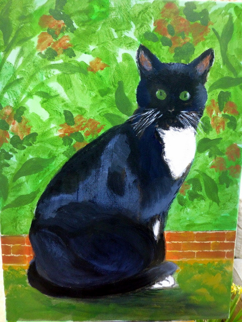 I have not been taught to paint animals but maybe my natural love of all creatures great and small helps me depict them. Ella, a dear horse adored by her owner Lucy, one of my granddaughters, was my first nervous attempt. I was very pleased with the result which spurred me on to paint my own cat Maisie and other people’s pets.