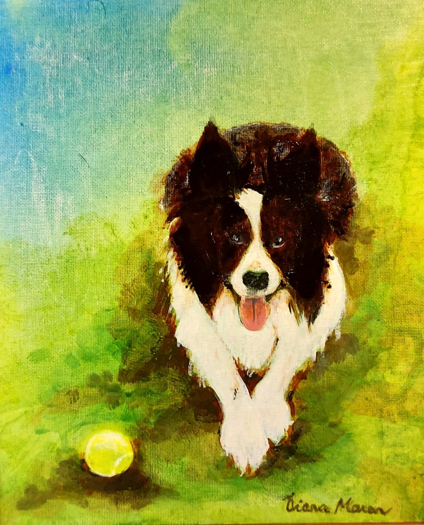 Handsome Eric is the nephew of Mollie the Collie – who I painted a few years ago . Lovely Auntie Molly was owned by my dear friend Robin, but sadly she recently died aged 13 years.