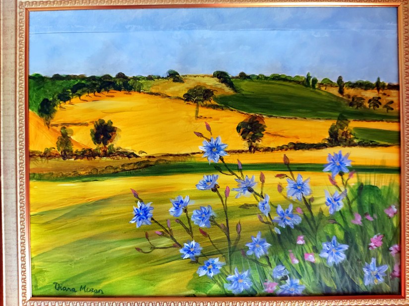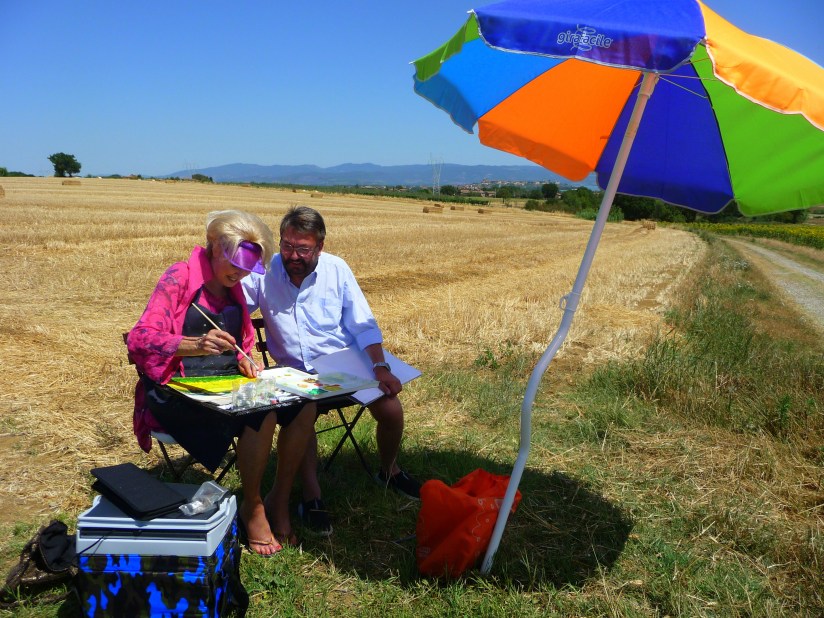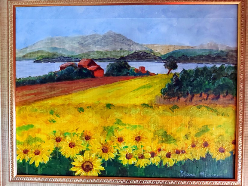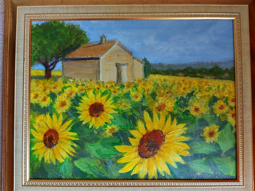 Having packed some art materials into my luggage I took the opportunity in my time off of camera to paint in Acrylics on acrylic paper. 11 x 14 inches. Yellow is my favourite colour so I was in my element. with the acres of golden sunflowers.
