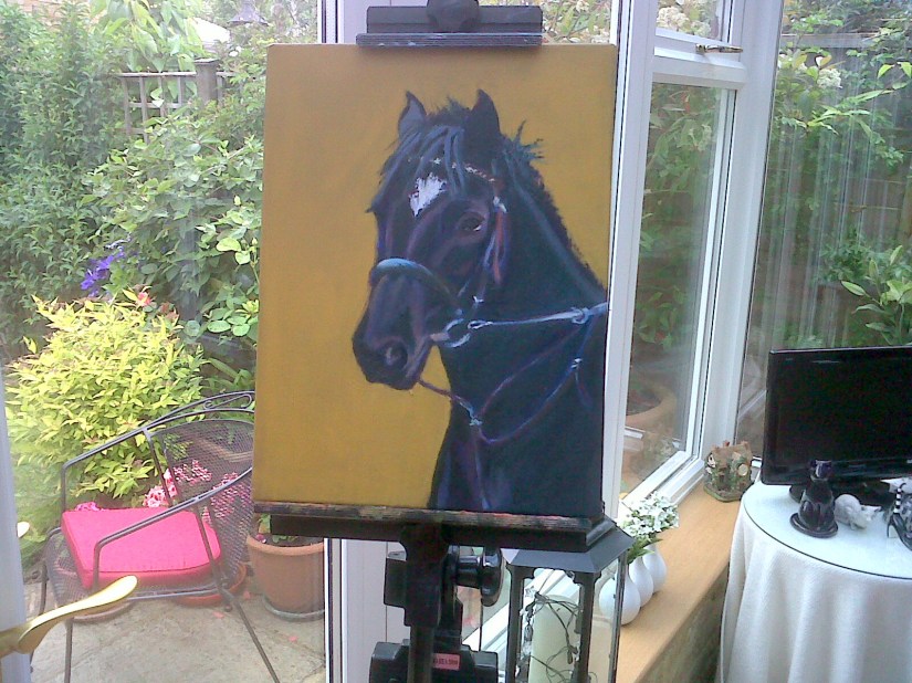 10 x 12 inches Acrylics on Canvas Eric is an eleven year old Border Collie. He is a Pet therapy dog going into Hospitals and Care homes where his presence is much appreciated by the residents. He has appeared on a calendar and at Crufts many times with success in his respective schedule. He comes…